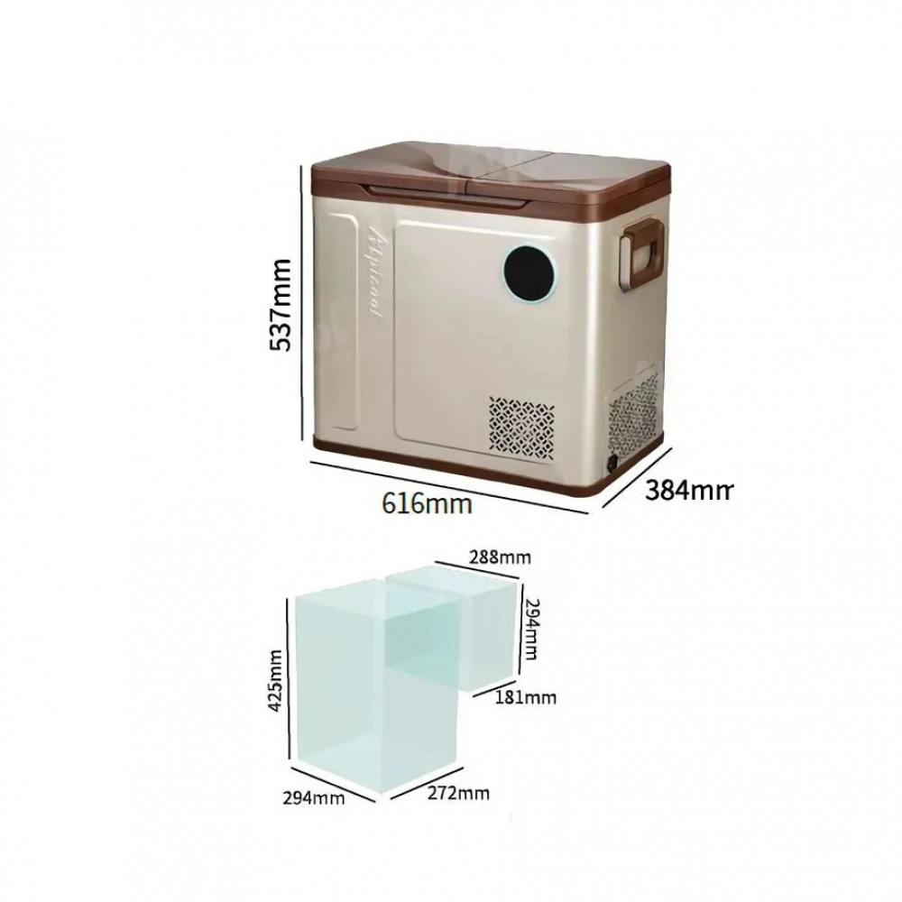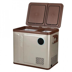 Объем холодильника 58 л, а поддерживаемая температура от +20 до -20°C, что оптимально для хранения продуктов в течение нескольких дней. Внутреннее пространство разделено на две камеры, и в каждой настраивается своя отдельная температура, чтобы одну использовать как морозильник, а вторую — как обычный холодильник. Такая гибкость помогает хранить одновременно и охлажденную, и замороженную еду.