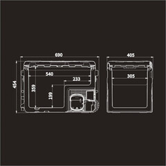 На корпусе есть панель управления с дисплеем, с её помощью можно настроить рабочую температуру от +20 °C до -20 °C, автохолодильник будет автоматически поддерживать её. Так же можно выбрать один из двух режимов работы. Режим «MAX» (Турборежим) позволит быстро заморозить продукты, благодаря работе на максимальной мощности. Выбрав «ECO» (Экономичный) режим работы, холодильник будет дольше достигать заданного значения температуры, но при этом расходует меньше электроэнергии. В случае каких-либо сбоев в работе, на дисплее отображается код ошибки, что подскажет в чём именно проблема. Автохолодильник оснащён ручкой и колёсиками, что обеспечивает удобную ручную транспортировку.