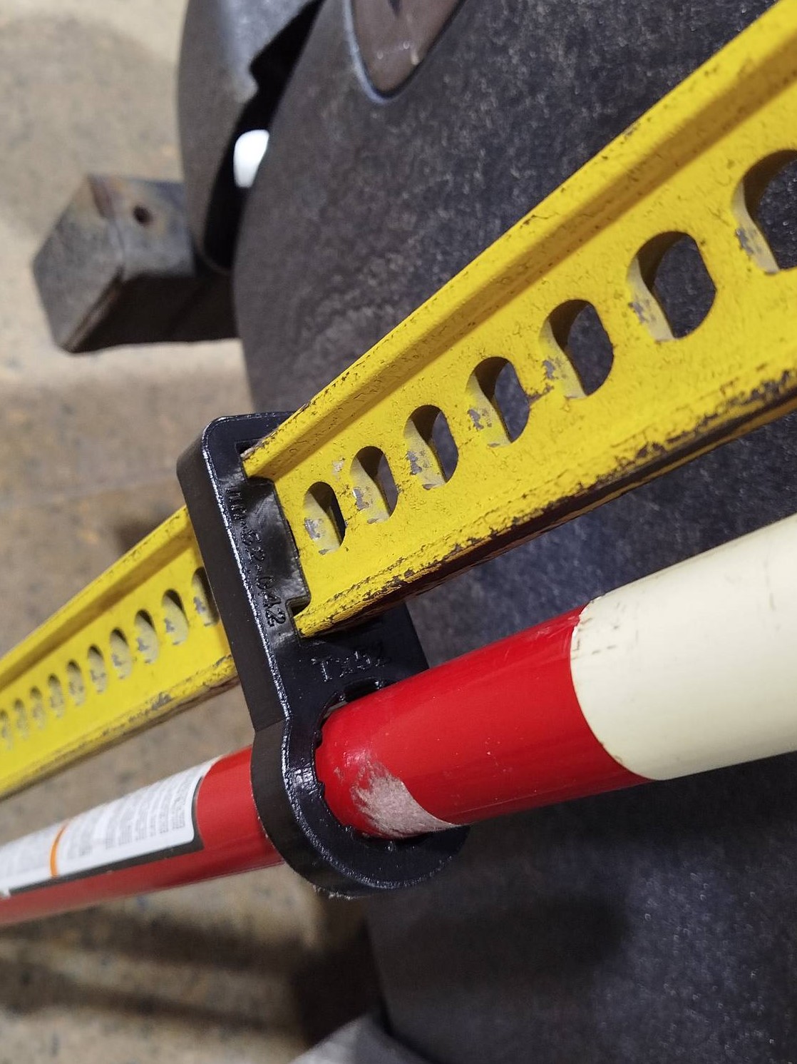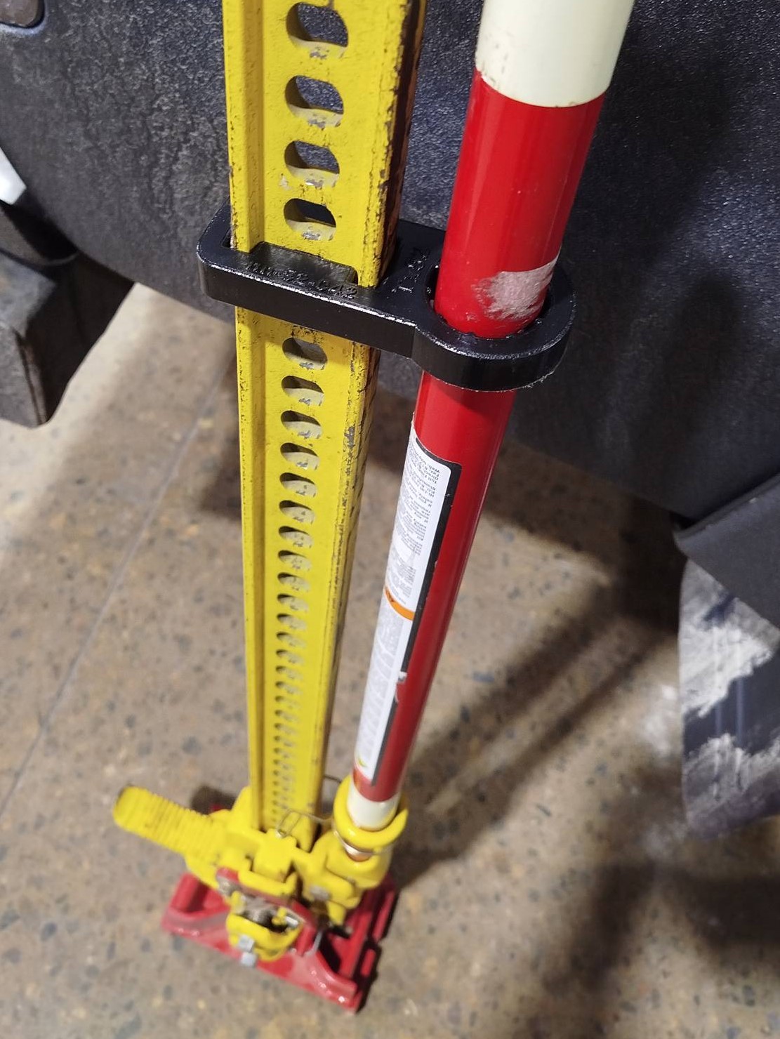 Держатель рукоятки реечного домкрата хай-джек (hi-jack). Изготовлен из прочного, износостойкого полиуретана. Держатель имеет два внутренних отверстия, повторяющих форму рукоятки и рейки домкрата. Держатель надевается одновременно на ручку и рейку домкрата и надежно удерживает их, тем самым предотвращая болтанку рукояти и предотвращая ее соприкосновения с рейкой домкрата. Для установки и снятия полиуретанового держателя необходимо убрать верхнюю зажимную скобу (наконечник) реечного домкрата.