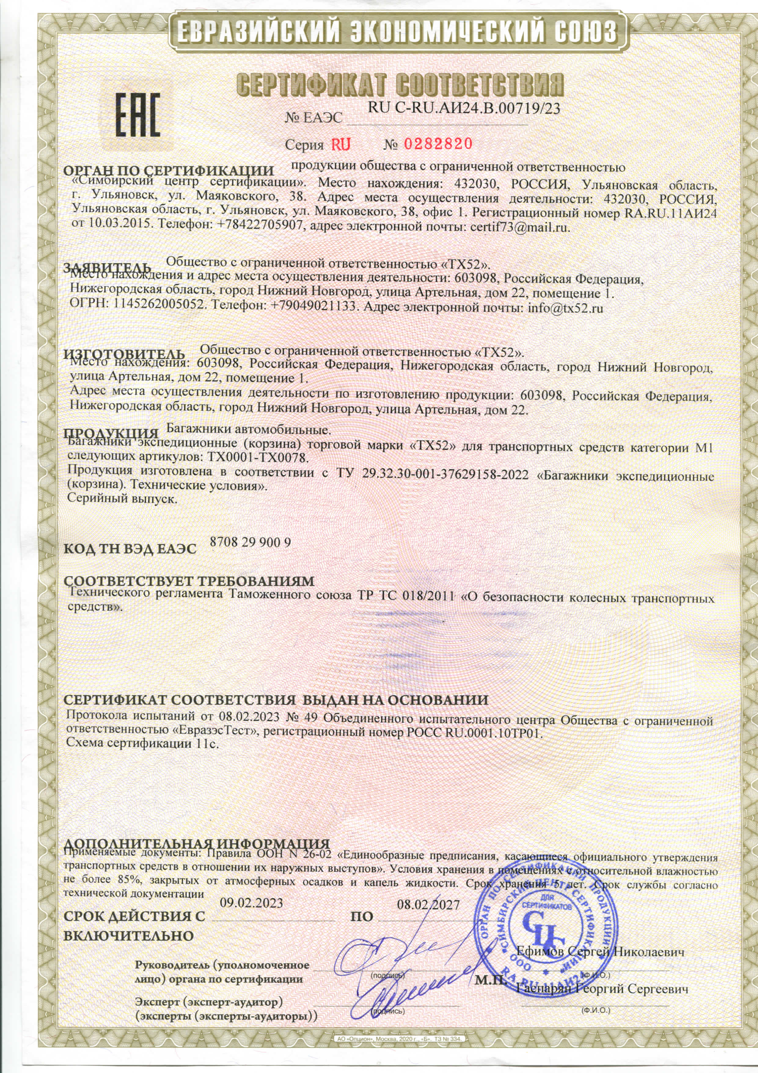 ГАРАНТИЯ: Несмотря на предполагаемые специфические и жёсткие условия эксплуатации силового обвеса, на все изделия «ТХ52» установлена гарантия производителя 3 года со дня приобретения изделия (кроме гарантии на покраску).